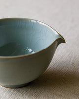 We have long admired Wang’s ceramics for being rooted in daily life: his adept craftsmanship is dedicated to making something very simple, and a large part of his pottery’s elegance is in how well it functions. This holds true on every level of detail: beyond how the lid and cup might fit perfectly together, into how they sit so comfortably in the hand of the person making tea, or how the wet leaves vividly appear against the matte-white glaze of the vessel. These pieces are meant to be used every day, for many years, and have an aesthetic warmth to them that indicates this – an inviting quality well suited to vessels, and that we may best describe as “open.”