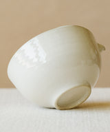 We have long admired Wang’s ceramics for being rooted in daily life: his adept craftsmanship is dedicated to making something very simple, and a large part of his pottery’s elegance is in how well it functions. This holds true on every level of detail: beyond how the lid and cup might fit perfectly together, into how they sit so comfortably in the hand of the person making tea, or how the wet leaves vividly appear against the matte-white glaze of the vessel. These pieces are meant to be used every day, for many years, and have an aesthetic warmth to them that indicates this – an inviting quality well suited to vessels, and that we may best describe as “open.”