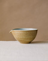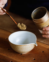 A beautiful one-of-a-kind bowl for making matcha latte crafted by Jingdezhen ceramicist Wang Xinghua. In a beautiful new glaze: rust marked, striated and speckled, like earth deposits shifted by wind.