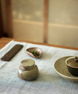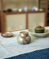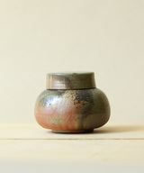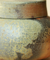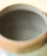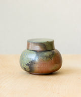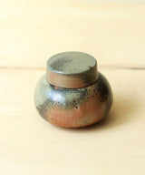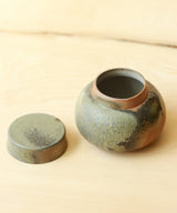 Each tea jar is thrown carefully by hand. The body and the lid are made separately on the wheel. Three lids are made for each tea jar so the one with the best fit is picked after the firing. The pieces are air-dried for 3 days until they are bone dry before trimming and then bisque firing. The tea jar was wood-fired for 3 days in the kiln, with temperatures maintained at 1400 degrees Celsius. It took around 3 additional days for the wood-fired kiln to slowly drop in temperature, so each piece spent a total of 6 days in the kiln. The tea jar went into the kiln with no glaze on the inside and outside, and emerges with its own unique color, texture and sheen from the atmosphere inside the kiln.