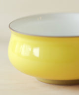 Exquisite imperial yellow color glazed porcelain tea cup, made by Rushi Studio in Jingdezhen, China.