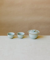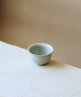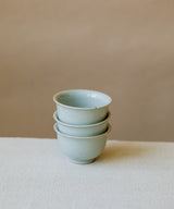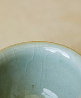 A beautiful tea cup crafted by Jingdezhen ceramicist Wang Xinghua in his newest glaze, celadon ice: slick, cool and shiny, like a frozen lake with veins of disturbance running through it