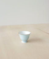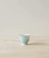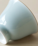 Exquisite sky blue color-glazed porcelain tea cup, made by Rushi Studio in Jingdezhen, China.