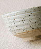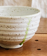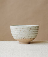 This chawan is the first batch Robert has made in collaboration with us, in a beautiful matte white glaze. It has a classic shape, perfect for whisking an everyday matcha in, or preparing matcha lattes, and have a sleek, subtle finish. Its real charm is felt when you hold it and lift it to your mouth.