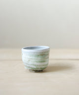 Soda fired, small tea cup made by Danny Kostyshin in Vancouver, BC. Mixed stoneware clay body.