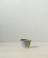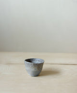 Wood fired, small tea cup made by Danny Kostyshin in Vancouver, BC. Mixed stoneware clay body.