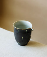 A beautiful one-of-a-kind pitcher crafted by Jingdezhen ceramicist Wang Xinghua. It has a delicate curved spout that offers extremely precise and controlled pours.