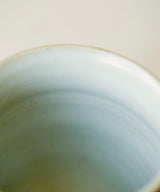 We have long admired Wang’s ceramics for being rooted in daily life: his adept craftsmanship is dedicated to making something very simple, and a large part of his pottery’s elegance is in how well it functions. This holds true on every level of detail: beyond how the lid and cup might fit perfectly together, into how they sit so comfortably in the hand of the person making tea, or how the wet leaves vividly appear against the matte-white glaze of the vessel. These pieces are meant to be used every day, for many years, and have an aesthetic warmth to them that indicates this – an inviting quality well suited to vessels, and that we may best describe as “open.”