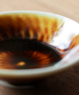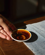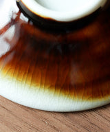 Wei throws each plate carefully by hand. The pieces are air-dried for 3 days until they are bone dry before trimming and then bisque firing. The cup goes into the kiln without any glaze on the outside and emerges with its own unique color, texture and sheen from the atmosphere inside the kiln. Each piece is fired in the soda kiln for 2 days, where temperatures reach up to 1300°C.