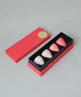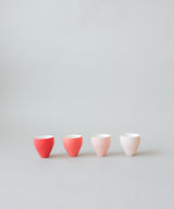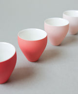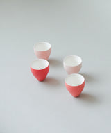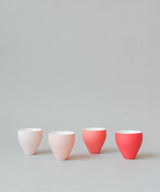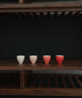 A set of four strikingly beautiful tea cups, in four captivating matte shades of red glazes. These cups are hand made in Jingdezhen Prefecture by ceramicist Ruan Xiangfei.