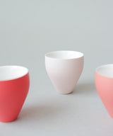 The inside is a shiny white glaze that's perfect for admiring the color of your tea. The outside of these tea cups boast luscious and rich shades of red glaze that has a beautiful matte finish. The minimalistic and elegant form of the cups fits perfectly in the hand. The colours will brighten up your tea rituals at home.