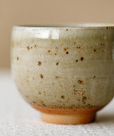 Wei throws each cup carefully by hand. The pieces are air-dried for 3 days until they are bone dry before trimming and then bisque firing. The cup was wood-fired for 3 days in the kiln, with temperatures maintained at 1400°C. It took around 3 additional days for the wood-fired kiln to slowly drop in temperature, so each piece spent a total of 6 days in the kiln.