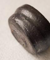 Matte, marked, and a poetic investigation of balance without evenness — this striking, gun-metal tea cup feels like an appeal to gravity, although it is much lighter than it looks.