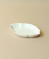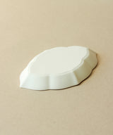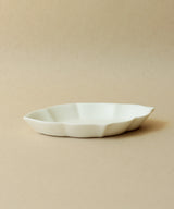 An exquisite handmade small plate in fine white porcelain, inspired by the beauty and subtlety of water chestnut flowers 菱花.