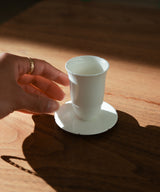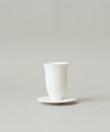 A stunning set of tea cup and saucer in delicate white porcelain. The design of this set is inspired by the simplicity and elegance of the everyday wares in the Song Dynasty that were used in the royal court.