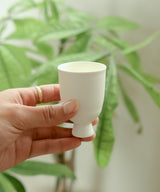 The outside is a strikingly beautiful matte 霜白 “shuangbai” white glaze. The inside is a delicate shiny tianbai 甜白 “sweet white” glaze. The purity and simplicity of the cup emphasizes its elegant form and enhances the experience of admiring luscious colors of tea. The cup's tall and slim form accentuate the experience of enjoying aromas and fragrances of tea.