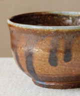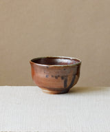 Stoneware clay body. A stunning chawan with a beautiful copper hued glaze on the outside with natural drip marks.