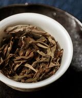 In this lesser-known and remote village, there are still large areas populated with ancient tea trees. This pu’erh cake is made from the leaves of trees that are between 200 and 300 years old, and grow at roughly 6000 ft above sea level.