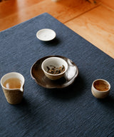 The tea it yields is spacious, in that there seems to be a negative space in what it carries across the palate. It moves this space through us, opening the chest and expanding through the body horizontally. The funk and ferment of fallen leaves intensifies progressively, as does an underlayer of confection, but this body is not imposing – it does not lose its spaciousness.