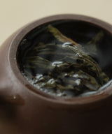 Wet, in a gaiwan, the leaves of this tea are dark, with a slight sheen, and notably fragrant. The sustained vividness of these leaves as they progress through many infusions invites us to consider something about how the past carries forward: memories that remain generous and vibrant, and that we are continually nourished by whenever we recall them.