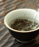 The cake is stunning - the leaves are full, plump and have a beautiful dark blue sheen. On the nose, it has distinct and unique floral notes when brewed. On the palate, it is a gentle, smooth pu’erh raw with clarity, depth and a slight smokiness.