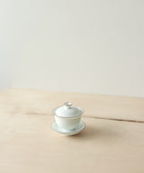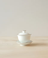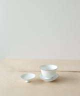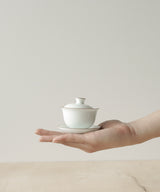 Exquisite pearl white color-glazed porcelain mini gaiwan made by Rushi Studio in Jingdezhen, China.