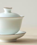 Each gaiwan and tea cup is hand thrown on the potter’s wheel. The glazes are applied by hand to the ceramic body both on the interior and exterior, and fired in the kiln at high temperatures exceeding 1300°C.