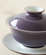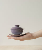 Exquisite monochrome color-glazed porcelain gaiwan made by Rushi Studio in Jingdezhen, China.