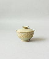 He throws the gaiwans on the potter’s wheel and shapes each gaiwan by hand from his own special formulation of Jingdezhen clay and porcelain clay. After bisque firing at 800°C, he applies his own glazes by hand. The gaiwans are then reduction-fired at 1300°C.