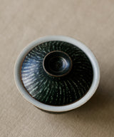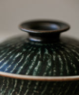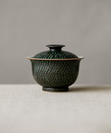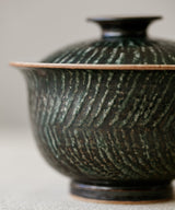 A beautiful one-of-a-kind gaiwan crafted by Jingdezhen ceramicist Wang Xinghua. The gaiwan has a stunning dark green glaze with wavy brushstroke that Wang formulated himself.