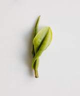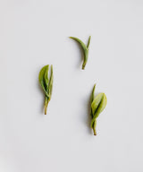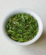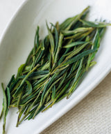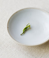 For many people, and across cultures, Anji Biacha is a highly anticipated, and highly appreciated, Spring tea. The name “Anji Baicha” is obscuring: while in this case it refers to a green tea, “baicha” translates to “white tea.” The varietal has been named this way because of its unusually colourless leaves: due to their lower chlorophyll and higher amino acid content, Anji Baicha leaves are a near-translucent, pale green. When dried, these pale, uniform leaves lay very flat like pine needles. Distinct to them is a dark, green vein which runs down the spine of each leaf, with fine arteries branching off of it. In water these flat, papery leaves behave in an unusual way: they unfold by spiraling open, from something flat to something multidimensional, gradually revealing their striking emerald markings. When these leaves are fully open and suspended in the gaiwan, they look like auspicious cranes.