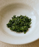 The first thing we notice about this gyokuro is its rich, almost oily smell. Its first long infusion has a bitterness that draws us forwards first, followed by a dense round mouthfeel that pulls us back and downwards. This tea’s ability to activate us is very legible on the palate, and if you are wanting movement in your life you will enjoy its intertidal behaviour.