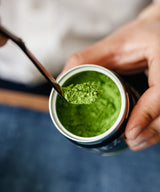 This matcha is warm and roasty. Its floral and low-hitting notes are brightened by the scent of pine and green plant, giving it an overall resemblance to a summer forest floor. You’ll feel the sun and fallen petals in this matcha.