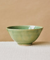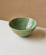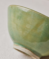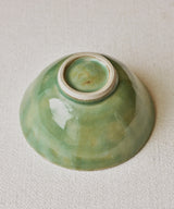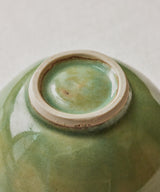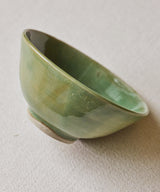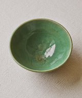 A unique bowl with a unique green glaze on the inside and outside.