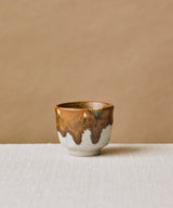 Wood fired, medium sized tea cup made by Danny Kostyshin in Vancouver, BC. Mixed stoneware clay body.