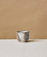 Wood fired, smaller sized tea cup made by Danny Kostyshin in Vancouver, BC. Mixed stoneware clay body.