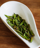 In Yunnan, it is a long-standing tradition for the locals to harvest a small amount of fresh shoots from wild tea trees. The shoots would be dried under the sun, or pan-fried. These teas are never for sale in the marketplace, and locals only make enough of it for their own consumption. Many years ago, Mr. Tang went to attend his brother’s wedding on Daxueshan, in Fengqing, Yunnan. This is where he first encountered the wild pu’erh shoot tea made by local villagers. He was immediately captivated by the unique smell of wild flowers present in the tea. Since then, every spring, he would visit a few villages in Daxueshan, collect a small amount of shoots from wild pu’erh trees with the vilalgers, and bring it back to his tea farm. As is the custom, he naturally withered the shoots in a sunroom and then roasted them over charcoal.