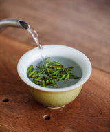 At 8200 feet elevation, the jungle terrain where these wild pu’erh trees stand is extremely steep, and a ways away from the nearest village. The trees have grown wild and untamed since they were planted by the ancestors of local, indigenous tribes more than one thousand years ago. These trees are noticeably unique: they are oddly tall, each with distinct character, and their buds emerge like dense bamboo shoots.