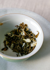 Master Bai, who crafted this tea, has perfected his own method of hot scenting. This tea went through 6 rounds of cold scenting, and was then finished with a round of hot scenting. The hot scenting gives a warmer, richer, taste to the tea and gives a deeper experience of jasmine than we are accustomed to.