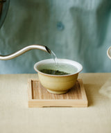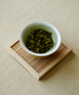 Because of the colder climate, the first harvest of Laoshan green tea is almost a month later than the first harvest of green teas from tea regions in Southern China. When the time comes, the leaves are hand harvested by Mr. Tang’s mother and grandmother, from their tea gardens that are scattered between Mount Lao and the Yellow Sea. Mr. Tang’s father and uncles, generational craftsmen who make this tea, have pan-fried it by hand in small batches in a charcoal-fired wok.