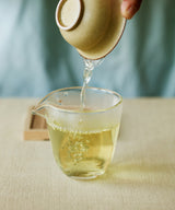 This harvest is very balanced in its qualities: it is as refreshing as it is rich, and as salty as it is sweet. Its champagne colour liquor has a rich, nutty aroma and an oceanic, umami forward taste. On the finish we find a light, uplifting astringency with a honeyed cereal undertone. The balancing act this tea performs gives this harvest a very satisfying fullness. It will be enjoyed by those who like a stronger tasting green tea that isn’t too cooling.