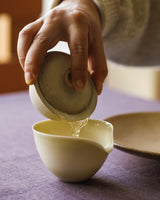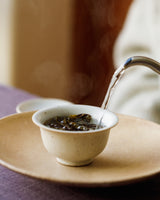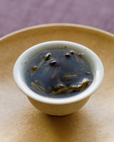 Because of its potency, the key to brewing this year’s harvest is using boiling water with very quick infusions, being sure not to let the tea steep for long. The first infusion yields a softly opaque liquor that tastes like sweet grain and poached pear soup. The cooling quality of the winter harvest, combined with its mouth-coating sweetness and well integrated flavours, leaves us feeling like we’ve had cold cereal milk or melted ice cream on our tongues. Through infusions the liquor increases in body while bright top notes come forward, revealing this tea’s vibrant energetics, like light sparkling across a field of snow.