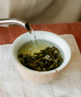 With a slightly oily texture, one really notices this tea’s intensity amassing through subsequent infusions. Its lingering notes, like longan and wood, are very soothing and give this oolong a downward pull that relaxes the body. Eventually it places us back where it started us off, with the last infusions tasting like very floral honey.