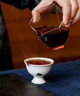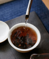 The orange peel in this tea, now 20 years old, is gently aromatic, and deeply ingrained in the tea it has been pressed with. The experience of drinking this pu'erh ripe is mellow and sweet, sustaining its balanced flavour through many infusions – an indication of its quality. Its liquor remains very red and has a clean, succinct aftertaste. This is the perfect digestif tea: it will soothe the stomach and aid digestion after what may have been a celebratory meal.