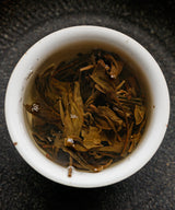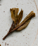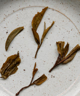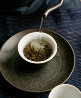 We notice the distinct energetics of this tea before its taste or mouthfeel. It lands very deeply in the body, bringing a strong force with it. The taste is almost medicinal, and the liquor is heavy as it passes across the palate.