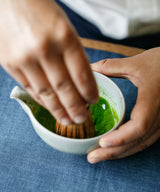 Traditionally stone ground and well packaged for travel, this powder whisks into a silky, bright emerald froth with little effort.
