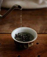 The tea brews a champagne coloured liquor, much lighter than the Bronze tea. Its taste is bursting with life, like spring flowers and magnolia. It has a robust aquatic quality, like water lotus: a unique bouquet supported by the earthiness of the tea itself.