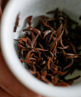 After several infusions the wet leaves look entirely like an aquatic plant. They are a rich, uniform, oxidized red – waxy, winding, and wholly intact.