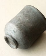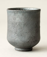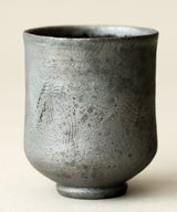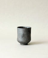 The yunomi has a beautiful matte black metallic sheen with a purple hue, the result of the truly unique clay body with Yixing (宜兴) clay. The color is rich and has a nice textured feel in the hand. The cup has a dark celadon glaze on the inside, with many iron speckles. It will develop a wonderful patina over time with repeated use.