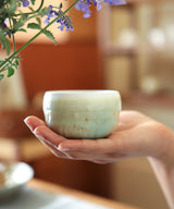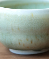 The cup is stunning with an elegant shape that fits perfectly in the hand for tea. The color resembles precious jade and is delightful for spring and summer. It is marvellously semi-translucent—a result of Wei's knowledge of clay bodies and her mastery of the technique.